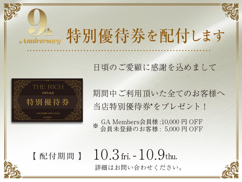 | 【GA Members会員様】 | ・The Rich優待券(10,000円割引)